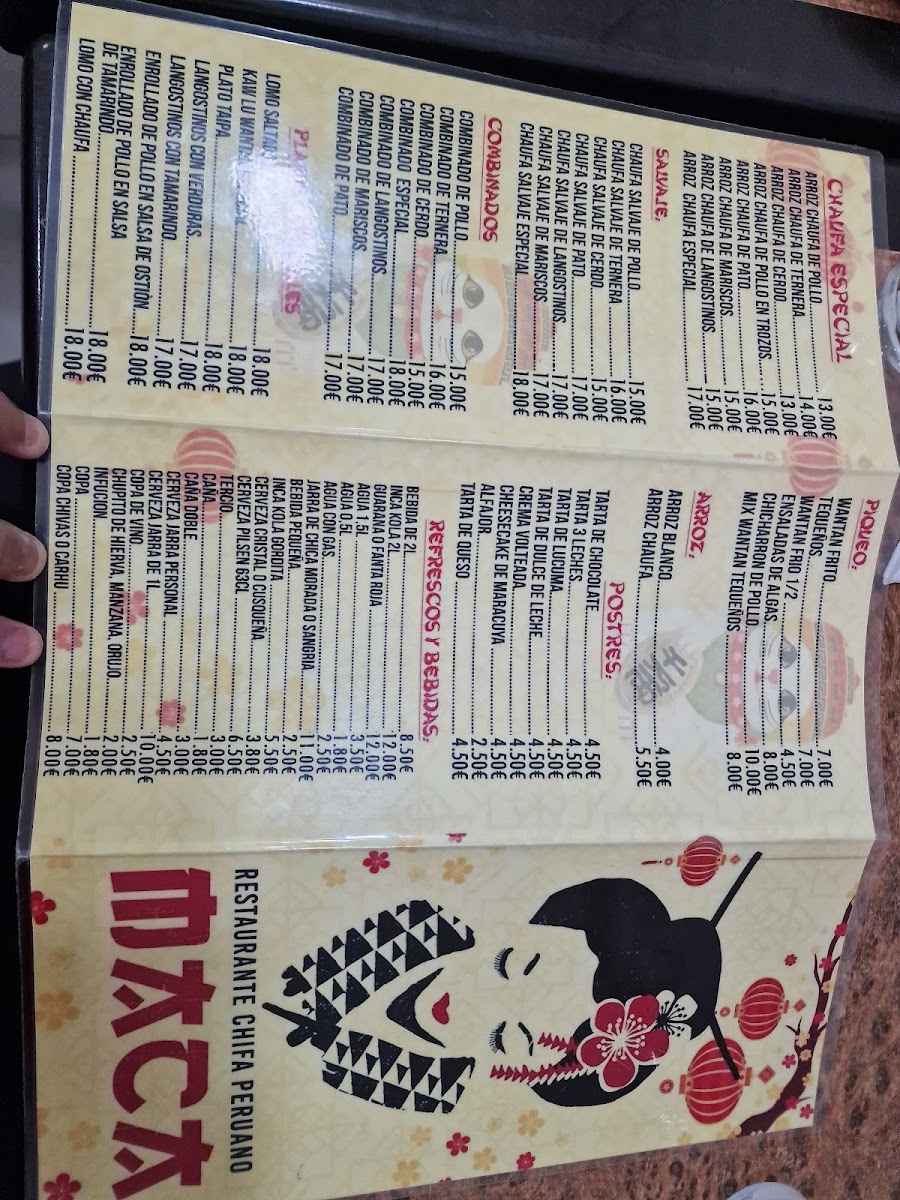 Welcome to CHIFA Maca, a culinary gem nestled in the heart of Arganzuela, Madrid. Specializing in vibrant Peruvian-Chinese cuisine, CHIFA Maca offers a delightful menu that caters to diverse palates. Highlights include their Arroz Chaufa (€4.00), a flavorful fried rice dish that's a local favorite. The restaurant also features a variety of scrumptious Tortillas, with options like the Tortilla Con Langostinos (€8.00) and the renowned Tortilla Especial (€9.00). If you're in the mood for something savory, don’t miss their Pato Asado selections, each priced at €13.00, showcasing tender duck paired with lush ingredients.